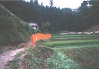 | 習性 ・猪の知能は概して高いうえ、犬にも優る嗅覚もあわせ持っている。大食漢で行動範囲が広いうえ、踏みつける力も強い猪ですから、 一頭でも小さな畑なら一晩で全部掘り返してしまいますし、刈り入れ前の田ならまるでむしろを 敷いたように。 水稲がすっかりと倒されてしまうほどの被害が発生します。 ・雑食性、産子数も多く、しかも、生まれた年の冬に子が一人立ちする。環境適合性の高い獣である。 生息場所は 山間部の谷浴い、沢浴いに山田や畑が入り込み、クヌギやコナラといった落葉樹か、 あるいはカシ、シイといった常緑広葉樹が繁り、アカマツが疎らに生えている里山一帯。 ・行動は下生えの多い森林や林緑部の湿地帯での生活に適した体形(短脚、胴長)猪は体に付いた外部寄生虫(ダニ等)を取り除くために、 地面を転げまわり 、背中をこすりつけ、いわゆるヌタ(ノタ)うちをして、体に付いた寄生虫を取り除こうとします。 ヌタうちの場所として泥湿地を利用しますので、 湿地から遠く離れた所には生息しません。 ・鼻鏡で匂いを嗅ぎわけ餌を探査するわけですが、その際、短脚であることが役立ち頭部を少し下げただけで、鼻鏡は地表にぴったりとくつっき、 地中にある餌でさえも簡単に探しだします。 またここぞという場所をみつけようものなら、すぐさま強力な鼻を使って土を掘り返しますが 、 太くて短い頚部は,鼻を跳ね上げるのに都合よくできていますし、ほとんど水平に突き出した下顎部中央の門歯は、 硬い土を掘ったり邪魔な植物の根を切ったりして、 スコップの役目をはたします。 ・夜行性で、日中は日当たりのよい やぶや森の中に隠れて眠っている。夜になると餌を求め行動する。追われると山を斜めに逃げる。 通る道は一定していて、渓流、山間の小道等を通路としている。ここには糞が散らばっていることが多い。 ・笹薮地には、常に一定した通路があり、山裾の耕地に通じている。猟犬に追われたりするときも、この通路を通り通路が谷川や 山道を横切る時には必ずとまるので、その横にいて止まった時に撃つ、 側面から撃つ時は肋骨の3本めを狙うと、丁度心臓を貫通する。 ・交尾期は11月の終わりから1月で、妊娠期間は112〜115日、普通5月ごろ4〜12頭の子を生む、生後2〜3ケ月までの子は赤褐色の 地に淡黄褐色の縦縞がある。通常うり坊といわれる。 2週間で母親について行動し、 1年で繁殖力を持つようになる。完全に成長するのは5〜6年後である。 ・体長 140cm 尾長 20cm 肩高 70cm 体重 50〜100Kg犬歯があり終始伸び続けるため、 発達した雄では有力な武器となる。雌と子供、若い雄は 一緒に群れて行動する。 成獣の雄は単独生活をする。 | ||||||||||||||||||||||||||||||