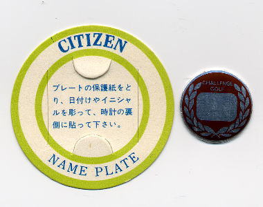 右は、付属品でネームプレートとあり、直径15mm程度のアルミ製のプレートです。
