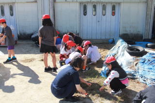 10月9日(木) PTA奉仕作業と地域のボランティアの方々 今日は、地域の方々やPTA、保護者の方々の協力のもと、PTA奉仕作業がありました。この夏で、運動場に雑草がたくさん生えてきました。みんなが使う運動場や学校の敷地内を、地域のボランティアの方々や3・4年生の子どもたちと保護者の方々が中心となって、草取りをしていただきました。みなさんのご協力のおかげで、子どもたちが過ごしやすい環境を整えることができました。ありがとうございました。 |