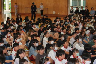 10月10日(金) 前期終業式 前期の最終日となりました。今日の1時間目に、前期終業式がありました。まず、前期を振り返って、2,4,6年生の代表児童が発表してくれました。前期頑張ったこと、後期に生かしていきたいことなどを発表してくれました。校長先生のお話では、海外の日本人学校勤務の経験をお話しいただきました。その後、表彰の伝達と士別市派遣団の研究報告がありました。前期最後の集会は、静かに集まり、落ち着いて話を聞くことができました。 |