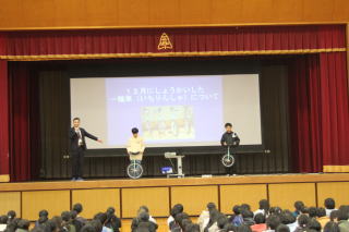 | 1月7日水曜日 2026年が始まりました! 新しい年が始まりました。子どもたちが元気に登校してくる様子を見て、楽しい冬休みを過ごせたのかなと感じました。教室の朝の風景も、和やかな雰囲気でした。今日の1時間目は、全校集会でした。校長先生のお話で「1年の計は元旦にあり」という言葉が紹介され、「今」を一生懸命過ごすことが未来につながることをお話していただきました。その後は、一輪車の使い方のお話。寄贈された一輪車を今日から使うことができるようになりました。 集会の後は、児童会役員の子たちが中心となって、先生たちが参加した福笑い大会が実施されました。大いに盛り上がり、賑やかで楽しい2026年の始まりになりました。 |