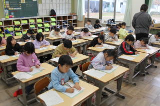 | 1月13日火曜日 避難訓練 今日は、今年度最後の避難訓練です。今回は、いつ行うするのか、時間を知らせずに実施しました。そして、もし行方不明者が出た時に、どのような行動をとるかといったことを想定した避難訓練としました。不明となった児童を、先生方がチームを組んで探しに行きました。無事に見つかり、訓練は終了。実際に災害が起こった時の動きを想定した訓練となりました。 |