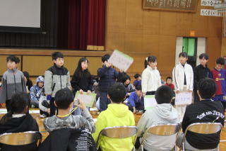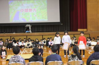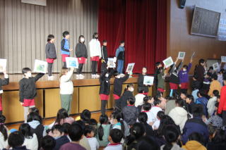 | 1月8日木曜日 書初め大会&北海道士別市小学校派遣団との交流 今日は、年に一度の書初め大会です。これまでの練習の成果を発揮する日です。朝から準備をして、1時間目から全校一斉にスタート。みんな心を落ち着かせて、静かに取り組んでいました。 そして、さらに今日は、遠く北海道士別市からお客さんが来ました。3年生がみよし市の紹介し、4年生が全国の名所や特産物、北海道のよさこいソーランを披露しました。また、5年生は「この星に生まれて」の学年合唱、6年生は「Paradise Has No Border」を披露しました。 士別市派遣団は、そのお礼として士別市や北海道の紹介をしてくれました。そして、三好丘小学校のみんなに北海道士別市の「雪とつらら」をプレゼントしていただきました。最後は、みよし市の給食を一緒に食べて、楽しく一日を過ごすことができました。士別市のみなさま、ありがとうございました。 |