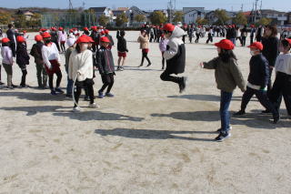 | 2月12日木曜日 大縄跳び8の字チャレンジ 今日のなかよしタイムは、全校そろっての大縄跳びチャレンジです。今日は、2月にしては、太陽の日差しも温かく、天候にも恵まれました。運動場では、クラス全員で、声を掛け合って8の字跳びにチャレンジしました。苦手な子も、みんなで励まし合って、果敢にチャレンジする姿が見られました。クラスの声援が心地よい時間でした。 |