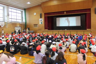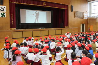 | 2月25日水曜日 集会(表彰、生活委員会発表、シルエットクイズ) 今日の朝は、集会がありました。みんな静かに集まることができました。今回の集会は、表彰、生活委員会の発表、シルエットクイズと盛りだくさんの内容でした。表彰のあとに、生活委員会が「世界のあいさつ」について、クイズ形式で発表してくれました。その後、みんなお楽しみの「丘小の先生たちのシルエットクイズ」です。シルエットになった先生が誰なのか、みんな興味津々です。正解が発表されると、歓声が聞こえました。とても楽しい集会の時間でした。 |