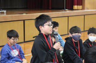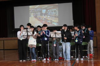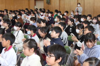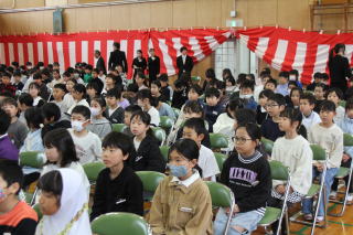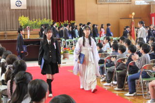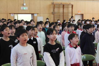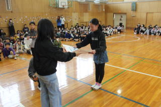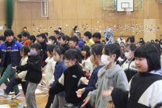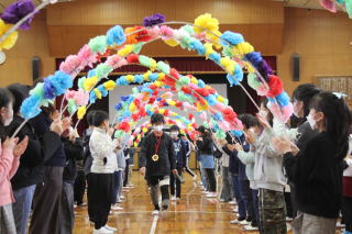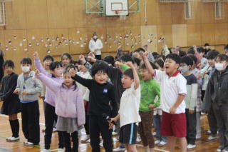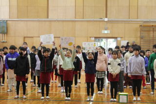 | 3月3日火曜日 卒業を祝う会 今年も、5年生を中心として、「卒業を祝う会」が実施されました。今年1年、最高学年として学校を支え、盛り上げてくれた6年生に、在校生がお礼をする会です。各学年、それぞれ練習してきたプレゼントタイム。6年生だけでなく、全校が笑顔になった会でした。5年生は、在校生代表として、卒業式に向けて気持ちを高めていきます。 そして、6年生は新たな門出を全校みんなに見送られながら、卒業への向けて新たな旅立ちです。学校みんなで、6年生の新たな門出を応援します! |