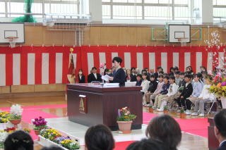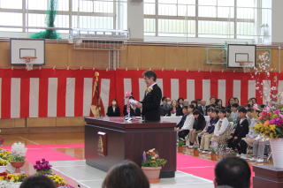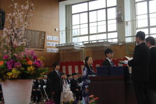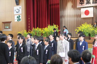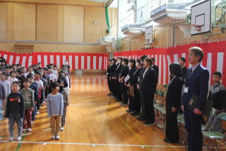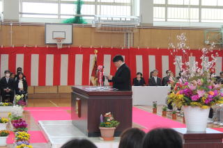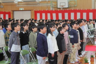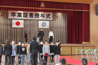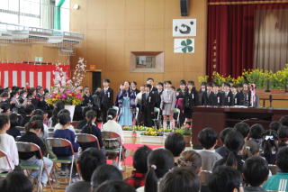 | 3月19日木曜日 卒業式 今日は卒業式。学校行事の中で、とても重要な行事です。小学校生活6年間の集大成の日です。6年生は、それぞれとても凛々しい姿で、小学校生活最後の日にふさわしい卒業式になりました。呼名の返事、呼びかけ、合唱、卒業生はとても立派な姿を見せてくれました。それに応えるように、在校生も厳粛な雰囲気をつくっていました。在校生も、卒業生もそれぞれがとても立派だった卒業式でした。 |