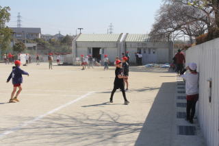 | 3月17日火曜日 なかよしタイムの様子 最近、とても気候がよく、なかよしタイムに元気よく外で遊ぶ姿がたくさんみられます。今日は、晴天で、とても温かい日でした。運動場では、子どもたちが、自分たちの思い思いの過ごし方をしています。サッカー、バスケットボール、リレーの練習など…。そういった子どもたちの姿は、見ている大人を元気づけてくれますね。 |