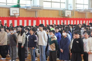 | 3月24日火曜日 修了式 今日は、修了式。1~5年生が、修了証をいただく日です。各学年の代表者が壇上で受け取り、代表者に続いて各学年の子たちも一緒に、修了認定を受けました。校長先生の話の後、1・3・5年生の代表児童が、1年の振り返りを発表しました。どの子も素晴らしい発表でした。そして、校歌を合唱した後は、春休みの過ごし方について、生徒指導の先生からお話がありました。来年度につながる修了式となりました。 |