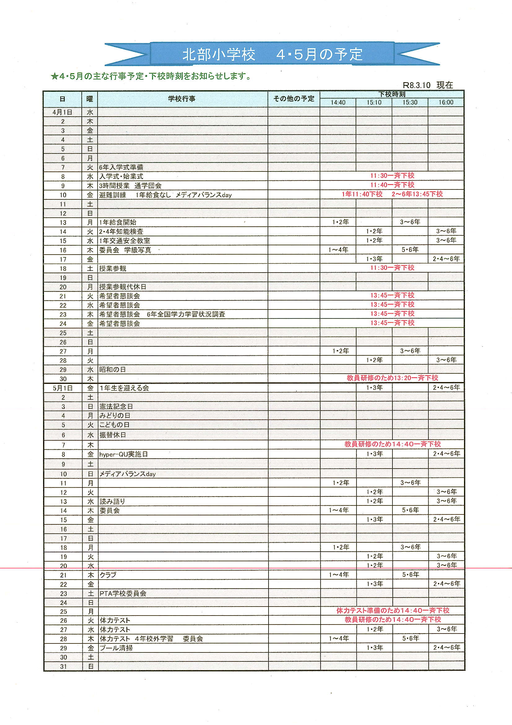 ※各種行事につきましては、日程の変更や中止・延期する場合があります。その際は随時お知らせいたします。