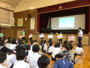 | おもちゃまつり 2年生が1年生のために、おもちゃまつりを開催しました。優しく説明したり、拍手で応援したりする、2年生のすてきな姿が見られました。1年生は、笑顔いっぱいで楽しみました。 防犯教室 3年生が、防犯教室に参加しました。自分のいのちを守る「つみきおに」をしっかり覚えました。 |