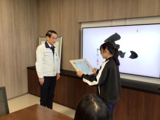 | 運動会のお礼 北部小学校を代表し、6年生4名が、感謝状をお届けするために昌和合成株式会社様を訪問しました。 駐車場を貸していただいたことで、たくさんの人たちの応援を受けて、運動会を開催することができました。保護者の皆様から寄せられた感謝のお声も、社長様にお伝えさせていただきました。 |