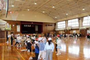 | 1年・6年ウォークラリー 1年生は、6年生が企画したウォークラリーを楽しみました。「巨大迷路」「的当て・輪投げ」「食べ物クイズ」「新聞を長くちぎろうゲーム」「楽器博物館」「描いた絵が浮かぶ!?」「動物クイズ・シルエットクイズ」「本探しクイズ」など、特別教室の特徴を生かした企画が多く、1年生の学校探検での学びをつなげていく6年生の発想力に感心しました。また、1年生全員が楽しめるように、「次は○○君が決めようね」と声をかけたり、入替時に掃除をして次のグループを迎えたりする6年生の姿も光りました。 |