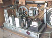 99/01月入手 サンヨー電機製 型式 SF−660 回路図貼り付けてありました。 マジックアイ付きです。 これがそうです。電波が強いと緑になります。 左が未同調 右は同調している状態です。 ほとんどの部品が内製していたようです。 | ||||