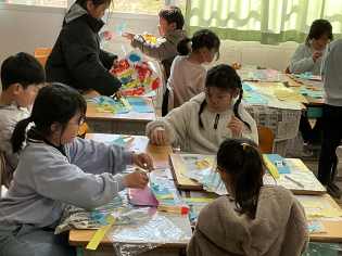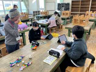 ひと言もしゃべらずに刺繍していて驚きました。小学校での家庭科の学習もあと少しで終わってしまいします。一針一針に、6年間の思い出を込めて刺繍しているようにも見えました♪ |