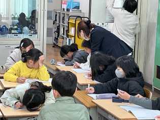 書写の時間に、3年生最後の課題「水玉」に取り組みました。今まで習ってきた、始筆、送筆、終筆を筆の向きを考え、丁寧に書きました。また、横画、縦画、左ばらい、右ばらい、はね、点などの筆使いが全て入っている「水玉」の手本をしっかり見て練習に取り組みました。次回は、清書をします。