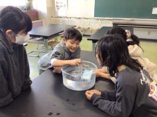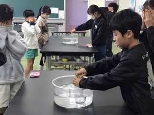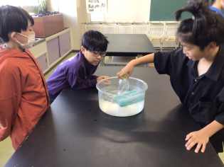初めて理科室で実験を行いました。指示をよく聞いて、楽しみながら実験することができました。 どんな実験をしたのかは、お子さんからぜひきいてみてください。