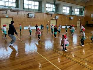冷たい空気に包まれた体育館では、1年生の元気な声が響いていました。