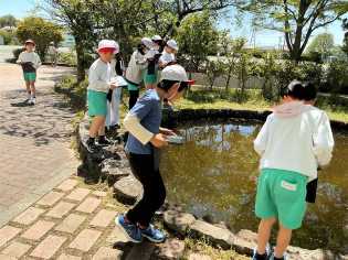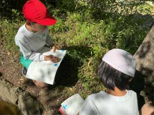理科の学習では、屋外に出て自然の観察を行いました。一生懸命に植物や生き物を探し、写真に収めてりました。