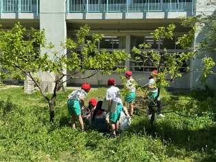 新学期が始まり、新しい教室からの避難訓練がありました。先生の後を静かに、素早く移動しました。