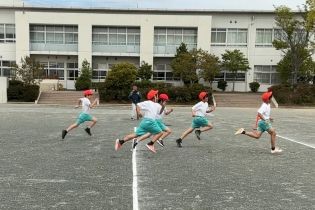 「いちについて、よ~い、ドン」の合図で力いっぱい走りだすと、待機している子どもたちや走り終わった子どもたちから、「がんばれ~!」の声が響いていました。中には、途中で止まりそうになった子もいましたが、声援を背にゴールまで全員が走り切ることができました。運動会が楽しみです♪ |