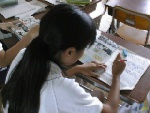 私たちのおじいさん,おばあさんの体験した戦争を調べていくうちに,沖縄での戦争について考えてみることにしました。私たちが調べたところ,沖縄県にはアメリカ軍が上陸して戦闘が続いたということがわかったからです。そこで,宮古島の北小学校の6年生といっしょに友利恵勇先生のお話を聞くことにしました。