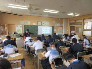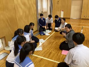 授業参観、ありがとうございました。4時間目には、学校保健委員会を行い、スクールカウンセラーの安食さんからレジリエンスを高めるための方法について講演をいただきました。ぜひ、家庭でも話題にしていただきたいと思います。また、保健委員の生徒が活躍した時間でもあり、終了後には、その頑張りをたたえ合う姿もありました。 |