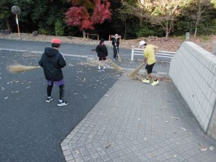 | 11月25日(火) 登校後、6年生が落ち葉拾いをしてくれました。 |