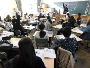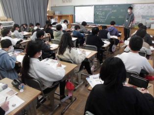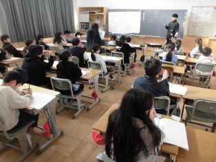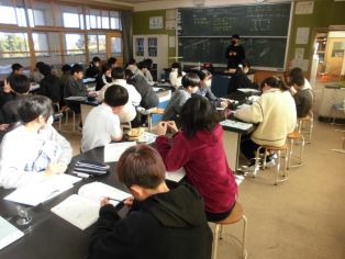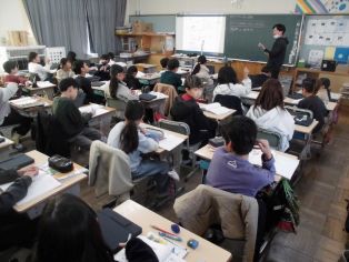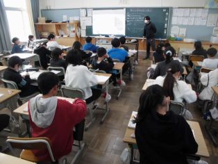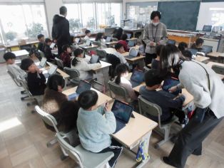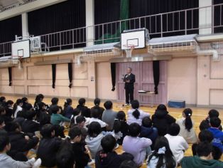 | 校長先生の話 冬休みの振り返りと新年のスタートについて話がありました。 11月に取材があったひまわネットワークの「ぼくらの学び舎」の番組を視聴しました。 |
