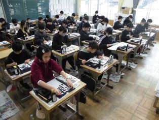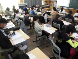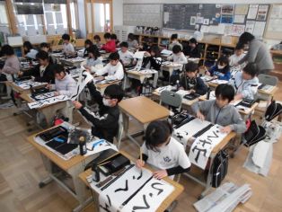 | 1月8日(木) 1、2時間目に校内書初め大会がありました。 どの児童も集中して取り組むことができました。 |