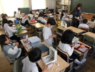 | 4年生 算数 小数のかけ算 図工 組んで立ててつなぐんぐん |
