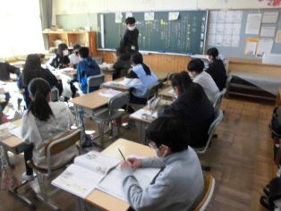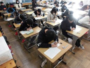 | 表彰がありました ・赤い羽根共同募金作品コンクール 書道、ポスター ・税に関する習字 ・防火ポスター ・わたしの好きな農作物図画コンクール 生徒指導の先生から冬休みの交通安全について話がありました。 |