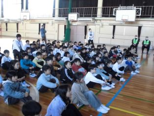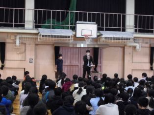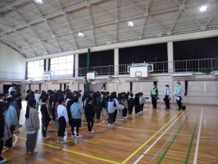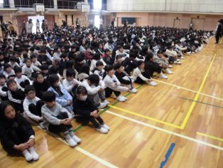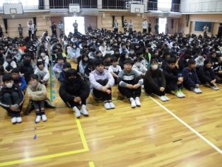 | 1月7日(水) 冬休み明け集会を体育館で行いました。 運営委員会が司会を務めました。 |