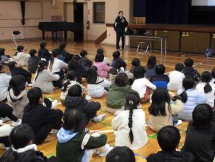 | 11月27日(木) 3、4年生 人権教室 市の人権擁護委員さんなどを招き、体育館で人権教室を行いました。 ビデオを見たり、クイズをしたりしながら自分を大切にすること、周りの人を大切にすること、思いやりの心をもつことなどを考えることができました。 |