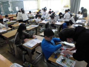 | 6年生 理科 かけがえのない地球環境 調べたことを発表しよう 家庭科 ウォールポケット作り 飾りとポケットをつけよう |