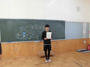 | 2月6日(金) 天王ハッピータイムがありました 運営員が司会を務めました 表彰 ・三河の子の作文 ・書初め大会 ・みよし市マラソン大会 |
