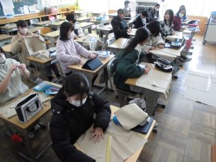 | 2月20日(金) 6年生 卒業式まであと18日になりました 家庭科 ウォールポケット作り 飾りつけとポケットをつけよう |
