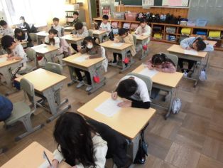 | 2月25日(水) 1年生 来週の「ありがとうの会」にむけて、お礼の手紙をかきました。 |