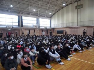 | 2月24日(火) 全校集会がありました ・校長先生の話 ・表彰 ・運営委員会からあいさつ運動の連絡 ・5年生から6年生を送る会についての話 |