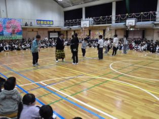最後に6年生と5年生と先生チームの大縄跳びの対決がありました |