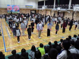 | 最後に「世界に一つだけの花」を全校で歌いました 退場の様子です |
