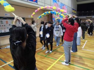 | 3月3日(火) 今年度最後のたてわり遊びがありました。 6年生が内容を考え、ゲームなどをしてみんなで楽しむことができました。 |