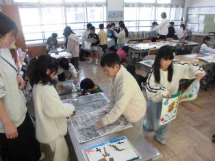 | 4年生 社会 特色のある地域とくらし グーループでテーマについてくわしく調べよう 6年生 家庭科 ウォールポケットづくり しるしをつけてアイロンをかけよう |