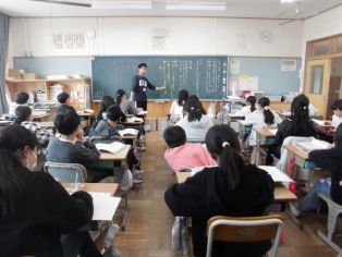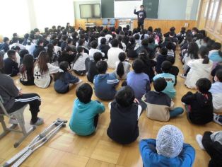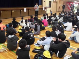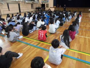 | 学年集会 これから気をつけること、意識してほしいこと、学年の目標などについて話がありました 6年生 5年生 |