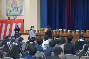 | 1年生代表が誓いのことばを述べました。立派な態度でした。 1年生は不安ながら無事に式を終えることができました。 |