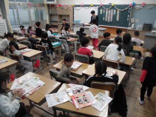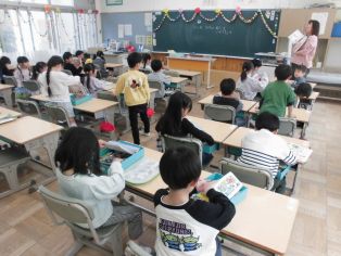 | 4月10日(金) 1年生 教科書を集めました 好きな生き物や食べ物について紹介し合いました |