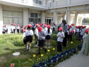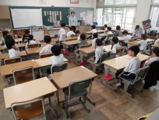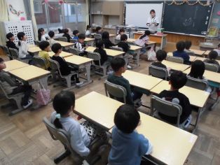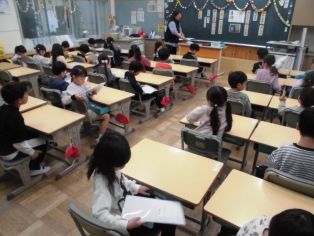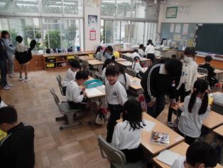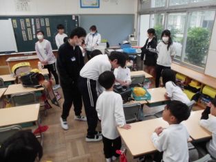 | 4月15日(水) 1年生が登校すると6年生が教室でお手伝いをしてくれています |