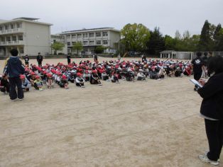| 第1回の避難訓練がありました。 今回は各教室から避難をしました。 落ち着いて、静かに移動することができました。 |