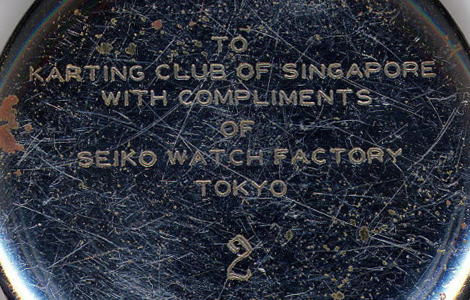 | TO KARTING CLUB OF SINGAPORE WITH COMPLIMENTS OF SEIKO WATCH FACTORY TOKYO 2 |