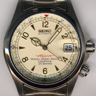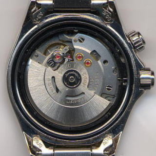 25石の自動巻き(手巻き付き)で、回転式インナーベゼルにスクリュウロック竜頭の